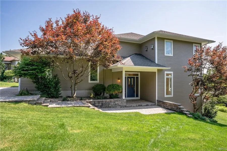 Welcome home to this well-built Michael Fendt transitional home on a quiet cul-de-sac. You will be impressed immediately by the freshly painted exterior, interior, and gleaming hardwood floors. This home offers a grommet kitchen with high end Viking appliances including double ovens, cooktop, and hood. Beautiful cabinetry and granite countertops with ample storage and prep space. The kitchen is open to the dining area and great room featuring a gas fireplace, large windows. and slider to the deck. The generous deck space is perfect to entreating or just sitting and enjoying the views of this beautiful, private, treed lot. On the first level you also have a half bath and first floor laundry room. The primary suite has an enormous walk-in closet, gas fireplace, gorgeous views of the property and ensuite bathroom. Two additional large bedrooms each with double closets as well as a full bathroom with double sinks and granite countertops. In the lower level they have a flex room that can be used as a 4th bedroom, office, in-law suite or entertainment room. A private toilet room and private shower room as well as an unfinished area with walkout complete the lower level.