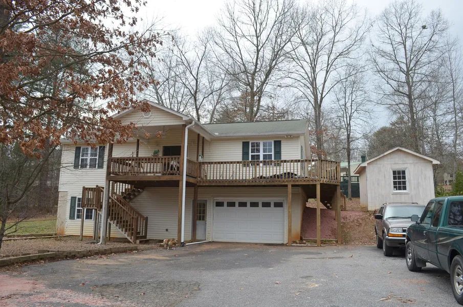 Renovated and Affortable. 3BR/3BA home with new floors, paint, light fixtures, kitchen appliances, new gas logs in fplc. Large Family Room with patio doors to covered porch. Private Kitchen with tile tops, cherry cabinets. Dining room has antique leaded glass windows and mission style lighting. 2 master suites on the main floor, one with a large jetted tub. Walk in closets!! Laundry on both levels. Lower Living has 3rd bedroom, small den, and 1 car garage. Right at 5 miles to town. Awesome gentle yard for gardens and Putting Green. :) Great buy for the sq ftg. Storage shed remains.