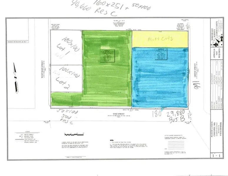 Res C multi family lot in downtown Chicopee. Lot size should allow for 19 unit apartment building. Buyer/developer to do due diligence with city. All utilities are at street. At least one sewer line stub is in place. New buildings going up on West Main street. Buildings across the street are being demolished. This is a prime piece to develop in Chicopee Res C. Lot for sale is in green on picture of map.