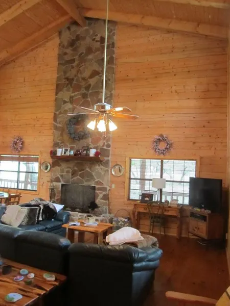 This beautiful two story log home is located in the prestigious River Tree subdivision, a gated community 3 miles south of Leakey just off of US Hwy 83. This heavily wooded lot is home to a 1,900 sq. ft. 3 bedroom, 2 bath home with covered wrap-around porches. Centrally located in the subdivision you are not far from Lombardy Park which provides access to the Frio River! The historic Lombardy Dam is located in this park and the Frio River is still flowing nicely in spite of the drought that we have been experiencing the past few years! The log home features a concrete circle drive with a fire pit and rock patio in the backyard. It also has a fireplace and a large master bedroom, bath and closet on the ground floor. List Price; $329,900