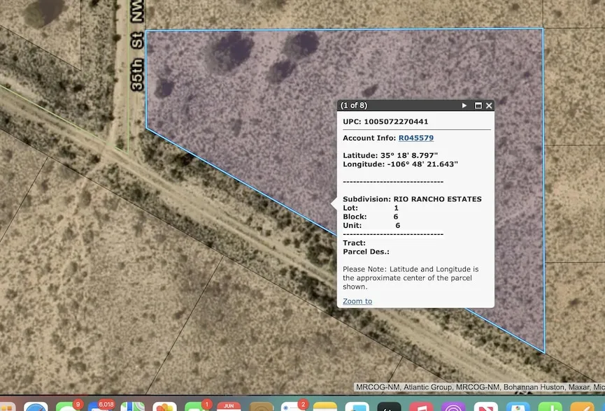 Research Parcel InformationPlease use longitude and latitude all dirt roads. Located on the corner of 35th st and Huerta NW Rio Rancho.