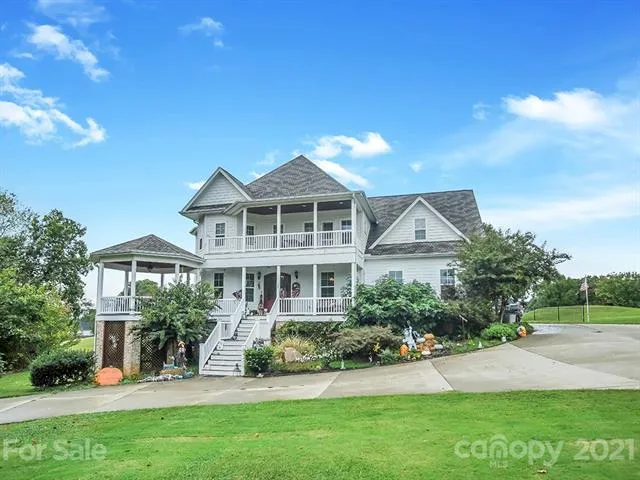 Stunning custom home with heated salt-water pool and beautiful golf course views! There is hardwood flooring, vaulted ceilings, on-demand water heater and large 3 stall garage! The chefs kitchen features a breakfast bar, island commercial grade gas range and a massive pantry. The living room has a fireplace, built-ins and sitting area. The main level finishes off with a office, dining room, laundry room and 2 half bathrooms. Upstairs features the primary bedroom, with sitting area and bathroom with dual vanity, tile shower and walk-in closet. Across the hall is a guest bathroom with dual vanity and tiled bath/shower combo. There are two bedrooms on either side of the bathroom with roomy closets, each of which walk out onto a large balcony. A second laundry area is down the hall, along with 2 bonus rooms with closets with a Jack and Jill bathroom. Backyard oasis awaits with views of holes #3 & #4 with seasonal views of Moss Lake. Home finishes off with a 1,500+sqft roughed in basement.