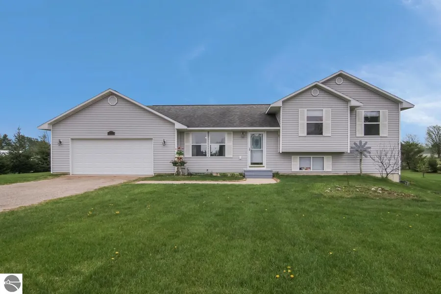 Quality built three bedroom, two bath home in Kingsley on an acre lot with 80 trees. Camelot is an award winning sub located within walking distance of the High school. Spacious open floor plan offers vaulted ceilings, beautiful plank flooring, berber carpet and all oak cabinetry and trim. The island kitchen opens up to the great room for ease of entertaining or just enjoying family life. Lower level has a cozy family room with pellet stove. Walk out lower level is plumbed for another bath. Larger attached insulated garage for extra storage. Natural gas available. water softner and osmosis machine.Enjoy back yard BBQ's from your deck all on a very roomy lot. Road is maintained by county. One owner home lovingly maintained. There are several acres of common area in Camelot for enjoyment.