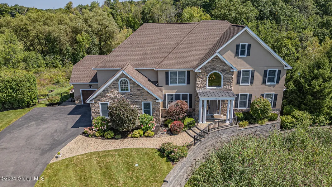 One-of-a-Kind Custom Smart Home! Experience unparalleled luxury in this meticulously designed property. The chef's kitchen is a culinary dream with hidden prep kitchen to keep entertaining effortless. The bright and airy floor plan includes a stunning two-story family room with tons of natural light. Each bedroom offers its own ensuite for ultimate privacy and comfort. Enjoy the dreamy primary suite, a true retreat with a steam shower. The finished basement offers a custom bar, gym, and wine cellar. Step outside to your private oasis, where a heated lagoon-shaped saltwater pool with a spillover spa awaits. The pool house is fully equipped with an outdoor kitchen, half bath, laundry, and an outdoor shower for ultimate convenience. Privacy and luxury abound in this tucked-away retreat.