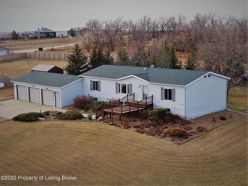 Seller offers $5,000.00 Allowance! Here's a TREASURE of a HOME just minutes from Dickinson. Located in Maryville Subdivision, this Remarkable Raised Ranch Home offers you the best sunrises & sunsets! Three bedroom/3 bath with room for additional bedrooms downstairs. Home offers an open floor plan, nice sized rooms and plenty of storage! Main floor master with en suite. Lower level features wet bar and hot tub room. Appliances stay. Huge yard has a sprinkler system that runs off the well. Mature trees and springtime splendor with blooming perennials! Shed stays. Large 3 stall garage with work area. Extra Parking. Decks front and back. Property includes .94 of an acre!