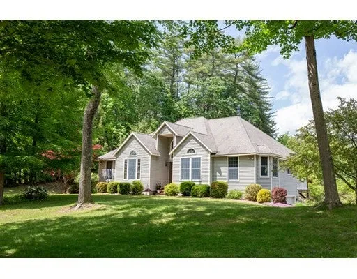 This stunning contemporary home has a French provincial feel. Built in 2001, and meticulously maintained, this 2900+ sq. foot, 3 bedroom, 3 bath home has room for all! Ash floors, central air, a welcoming foyer, a separate dining room with a raised ceiling, cherry cabinets with granite countertops in the kitchen, and a bright living room with a modern gas fireplace are some of the highlights of this home. Also on the main level, the primary bedroom is window filled, with walk in closets & an ensuite bathroom with jacuzzi tub & tiled shower. Two more bedrooms, a full bath, and multiple access to the covered mahogany deck make this easy living. The lower walk out level features tile floors, a family room, bonus room, full bath, laundry area, a heated two car garage, and walk out access to the lower patio area. Surrounded by trees & abutting APR protected land, this home truly feels like yo...
