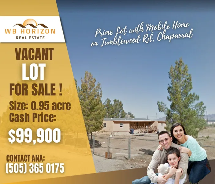 Explore the possibilities of this exceptional 0.95-acre residential lot located in the prestigious Delara Estates subdivision of Tumbleweed, Chaparral, NM. Featuring a fixer-upper house awaiting your creative touch, this property presents a unique opportunity for renovation and transformation. With all utilities readily available and a serene community atmosphere, seize this chance to make your mark. Priced attractively at $99,900, dont miss out on this remarkable investment. Contact us now to learn more or schedule a viewing.