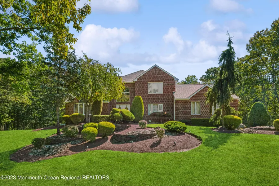 Look no further!! This stunning center-hall brick-front Colonial, located in the desirable Cul-de-Sac community, has an open floor plan and many amenities. This home features four bedrooms with three and one-half baths. Upon entering the two-story foyer, one finds it is open to a large sun-filled living room, which is adjacent to the formal dining room. The eat-in kitchen, which was redone six years ago, it has porcelain flooring, granite counters, tiled backsplash, peninsula with breakfast bar and all cherry cabinets with pull-out shelves. The dinette area has sliding glass doors leading to a beautiful in-ground pool and great space for outdoor summer entertaining. The family room is open to the kitchen and has a handsome wood-burning fireplace flanked by built-in mantel. In addition, the first floor features a wonderful home office/den, full bathroom and laundry room. On the second level, one will find the spacious primary bedroom featuring a luxurious en-suite bathroom with dual sinks, stall shower with glass enclosure and a soaking tub. There are three additional bedrooms on this level, as well as the main bathroom. This meticulously kept home also offers a multi-room fully finished basement with custom bar; two-car garage, professional landscaping, underground sprinkler and a park-like yard with patio. This home has been freshly painted, crown molding and plenty of recess lighting throughout the home. Excellent location, conveniently located near major highways and NYC train and bus lines. Freehold offers award-winning schools and an abundance of community activities. A winner!