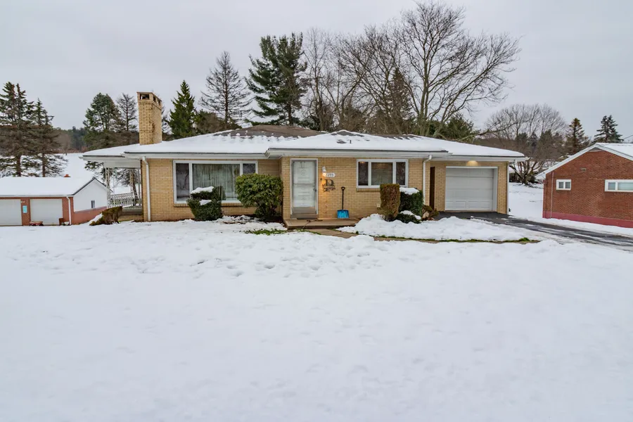 Great brick ranch on nearly 1 acre lot, close to Route 28! Eat in kitchen with raised panel oak cabinets and laminate counter tops. Living room features a beautiful fireplace and large picture window for abundant light. Two bedrooms on the main level both featuring bright corner windows. A third bedroom is in the finished basement. HUGE game room with fireplace and room for all your entertainment activities. Cozy side porch is accessible from the living room. Parking features a 1 car attached garage and a 2.5 car detached garage. Basement features large workshop area and laundry room.