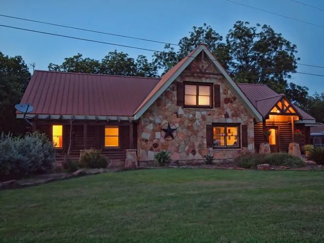 REDUCED PRICE! STUNNING 3 BEDROOM, 4.5 BATHROOM, TWO STORY LOG AND STONE LODGE-STYLE HOME ON 1+/-ACRE OF PICTURESQUE BLANCO RIVERFRONT. HOME FEATURES SLATE AND WOOD FLOORS, GRANITE COUNTERS AND CUSTOM PECAN CABINETRY. GE "CAFE" SERIES STAINLESS APPLIANCE PACKAGE, BAR WITH UNDERLIT ONYX BAR TOP. BUILT-IN WINE COOLER. UPSTAIRS LOFT WITH FULL BATH. COVERED OUTDOOR KITCHEN/LIVING AREA WITH GRANITE COUNTERS AND OUTDOOR STAINLESS APPLIANCES. FIRE PIT AND BUILT-IN OUTDOOR SEATING. EASY ACCESS TO 100+/- FEET OF BLANCO RIVERFRONT.