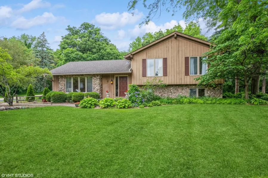 Welcome to Fenimore Lane in Oak Openings! A beautiful tree lined neighborhood with winding roads, unique architecture, and the perfect blend of privacy among a community of neighbors. On nearly an acre lot, this tri-level home sits along a corner of Hawkeye and Fenimore, framed by a split rail fence and a density of trees much like a forest preserve. An exterior of cedar and Wisconsin bluestone and an abundance of perennials lining the front walk way, add to the curb appeal. Inside you will find a surprising amount of living and storage space between the 4 bedrooms, 3 full baths, and an unfinished sub basement which is often lacking in split level homes. The kitchen has been renovated over the years with granite tops, ceramic floor tiles, and newer stainless appliances. The eat-in table space plus formal dining room are the perfect spaces to host gatherings year round. Both a formal main level living room and a lower level family room with wood burning fireplace, built in book shelves, recessed lighting, and exposed wood beams, are great for entertaining as well. There are 3 bedrooms on the second floor, including the primary bedroom and bath, and an additional hall full bath. The lower level has a 4th bedroom and full bath option, or perfect for a private home office. So much potential, so much space! Come see what you can do to make this your forever home! Roof approximately 20 years, Furnace and AC 2010, Humidifier 2019, Water Heater 2015, 2 Sump Pumps (1 new, the other 5years), Water Filtration and Softener 2022, Paver Patio 2016, Driveway 2018, GE Stove 2021, Maytag Fridge 2022, Disposal 2024.