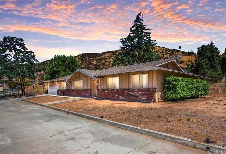 This charming ranch style home sits on a .99 acre of horse property. It is fully gated through the entire property. The property is horse ready with corals and pen. You can enjoy access through the front and rear of the property. There is an underground cold storage for all your canning or prepping needs. With a Permitted detached garage, you can utilize this many ways: as a barn, shop or extra storage for your toys or vehicles. There is already a attached 2-car garaged with shelving and cabinets. Also on the property is a batting cage and tether ball court for the kids to play. A fire pit to gather around and roast marshmallows. Kitchen and bathrooms were remodeled 7 years ago and have beautiful granite counter tops. A floor to ceiling brick fireplace. This 4 bedroom /2 bath home has a room for all your needs and who doesn't enjoy a laundry room slash mud room. The home is equipped with...