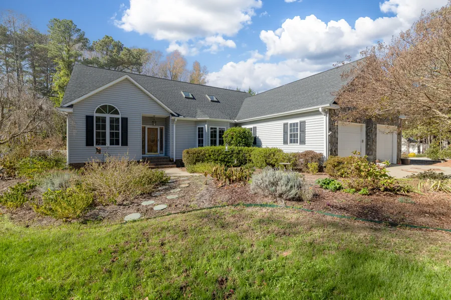KERR LAKE WATERFRONT HOME WITH SUNSET WATER VIEW. Spacious home located on well-landscaped lot with 2-yr-old, full-yard irrigation system, expansive concrete drive and parking. Entry foyer opens to lakeside living room with view of main-level rear screen porch and lake. Large master suite with direct deck access, spacious bath, two other bedrooms &full bath on main level, plus open concept living-kitchen-dining layout. Vaulted ceiling living room opens to second floor loft for bonus living area. Two large walk-in attic spaces. Plus lower-level in-law suite with ground-level lakeside porch access. Too many features to mention. Has 19x15 lower level workshop. Plus detached 16x12 storage shed for tractor mower. Boat dock. HOME comes FURNISHED. Check documents for list of what will remain.