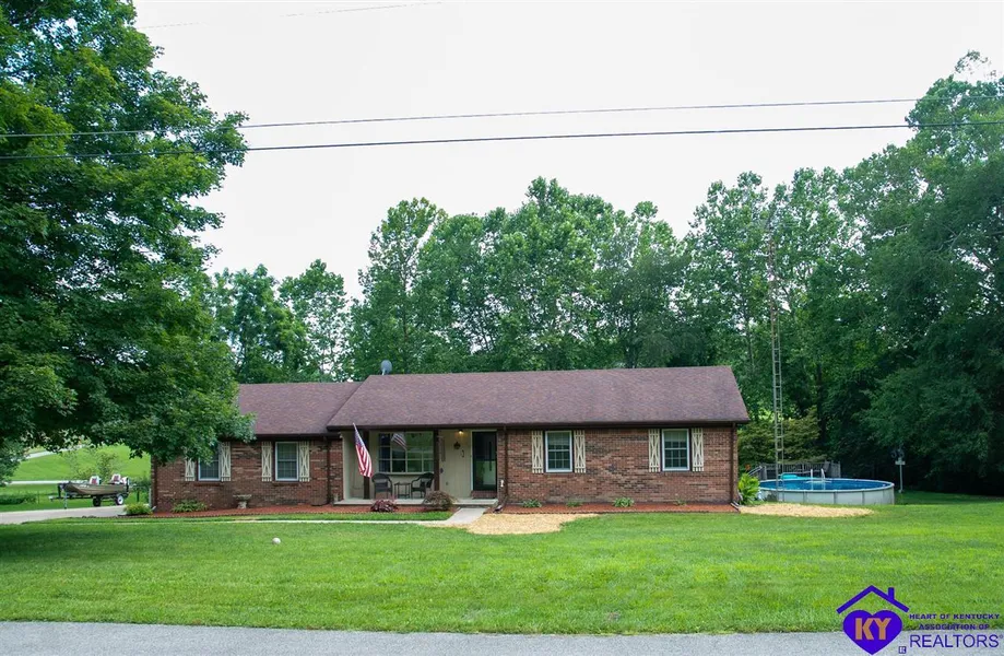 Located in a quiet subdivision just outside of town is this cozy home! This brick ranch has a 2 car attached garage and is sitting on a .99+/- acre lot with mature shade trees. Outside you will find an above ground pool and out building. Walk inside and there is a large eat in kitchen and cozy living room. The master bedroom with master bath is down the hall with two more bedrooms and one full bath. Go down in the basement and find a large bonus room, a full bathroom, laundry room, and a great room that has endless possibilities.