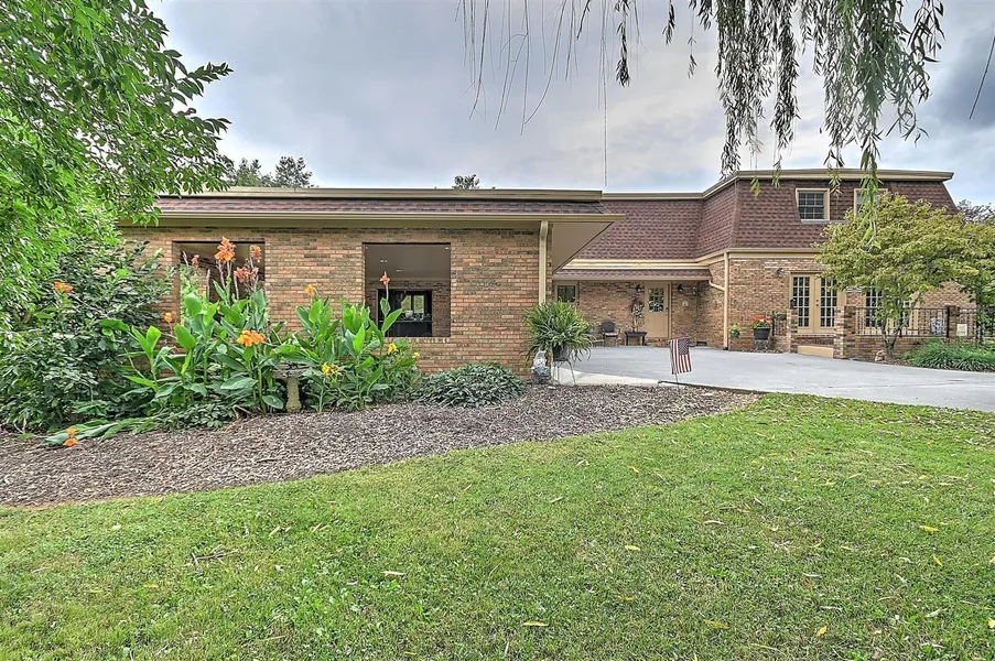 This brick home offers 3600 square feet of finished living area and is conveniently located within walking distance to the lake. It boasts all the amenities you could ask for, including high-speed internet and cable, natural gas access to the fireplace, water heater, and BBQ. For those who enjoy boating, there is a public boat ramp with parking just 0.2 miles from the home. The property also features a concrete driveway, a 2-year-old roof, and 3 heat pumps. Outdoor entertaining is a breeze with plenty of space and mature landscaping. The main level of the home includes a large living room with a fireplace and access to a beautiful patio area. The kitchen is spacious and features custom oak cabinetry, a backsplash, a large island with seating, and appliances with coverage through Sears (transferrable to the buyer for $50 per month). The dining room is elegant with oak hardwood flooring and French doors. Additionally, there is a main floor bedroom with French doors leading to the front patio, an office, and an updated guest 1/2 bath. Upstairs, you will find two more bedrooms, a flex room that can be used as a bedroom, and an updated bathroom. The primary suite is large and includes its own balcony and a luxurious ensuite bathroom with a jetted tub, walk-in closets, skylights, a dual vanity, shower enclosure, and storage. The finished basement offers a den or second living area with laundry facilities nearby, as well as a bonus or flex room. There is also an unfinished area for storage and housing the heat pump, water heater, sump pump, and outside entry/access. Overall, this brick home provides ample living space, convenient amenities, and a desirable location near the lake.