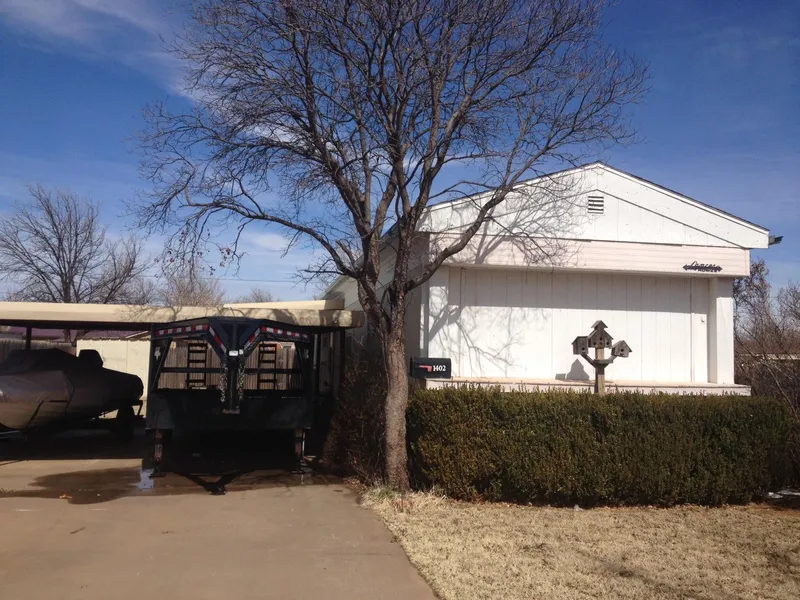 Trailer house For Sale. 2 bedrooms and 2 baths. Kitchen comes with all appliances. Double carport, fenced yard, and storm shelter.