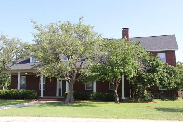 This beautiful, custom built 4/3.5 brick two story home sits atop a hill overlooking the city of Goldthwaite and the surrounding countryside. The home has over 5,000 sq ft of living area, a 576 sq ft two car garage, and 896 sq ft of covered porches in both the front and back of the home. There is St Augustine grass and beautiful live oaks in the front yard creating a very inviting view. A unique black metal fence, live oaks, and a wooded deck along with the covered porch create a relaxing outdoor living area in the back yard. A sprinkler system makes watering easy and keeps the grass green and lush.