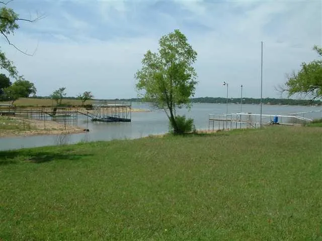 Very nice lake lot on Lake Nocona has a boat dock, pump from lake for watering, 2 rv campers setting on concrete slabs with covered roof, storage building and a covered picnic area.