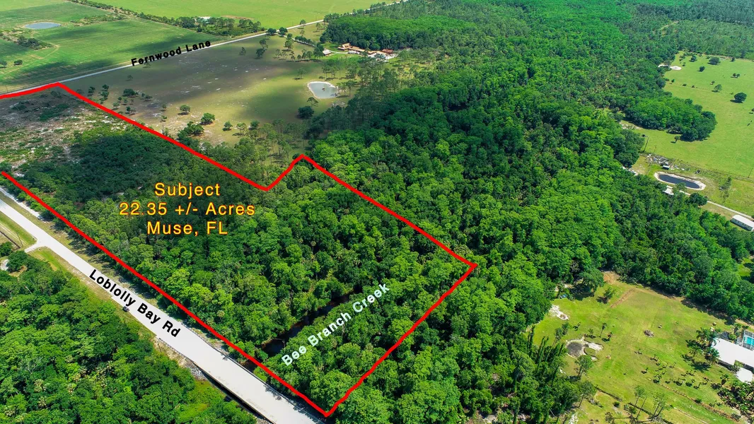 LOOKING FOR A PLACE TO FARM? A BEAUTIFUL PLACE TO BUILD YOUR FAMILY HOME INCLUDING SCENIC BEE BRANCH CREEK FRONTAGE FOR A FISHING DOCK? Get it ALL here with this 22.35 acre tract located on two paved roads on the SW corner of Loblolly Bay Road and Fernwood Lane in the private and tranquil Glades County Muse area. Bee Branch Creek is a huge tributary creek which runs from Fisheating Creek all the way to LaBelles Caloosahatchee River, great for fishing and enjoying nature at its best! Zoned agricultural and partially cleared for farming or cattle on half of the land with the other half perfect for your estate home in a park-like setting, framed by oaks and other scenic trees and adjoining the Bee Branch conservation area. This property has over 1900+/- feet on Loblolly Bay Road and 450+/- on Fernwood Lane. The Muse area requires wells and septic tanks. Property is partially fenced. Owner terms may be available to qualified Buyers!