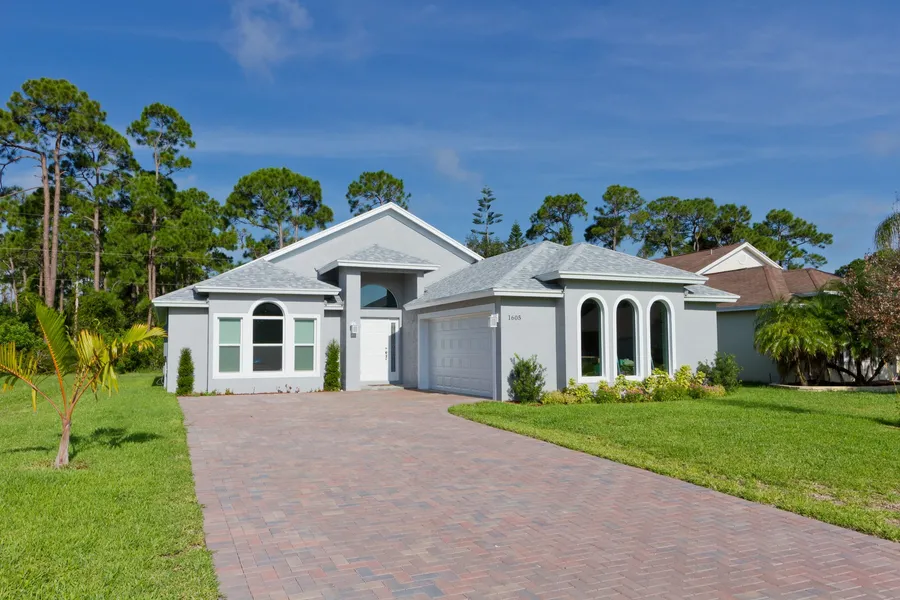Your brand new 2025 beach home sits directly off A1A and is at the beginning stages of an upcoming area! Here is your chance to get in at a low price and be in walking distance to the beach. This home boasts of quartz countertops in the kitchen and bathrooms, breathtaking 14-foot ceilings, impact windows and doors all around, upgraded and pristine finishes, new AC, hot water heater, roof, electrical and plumbing. Your dream of owning a brand-new home on A1A begins now!