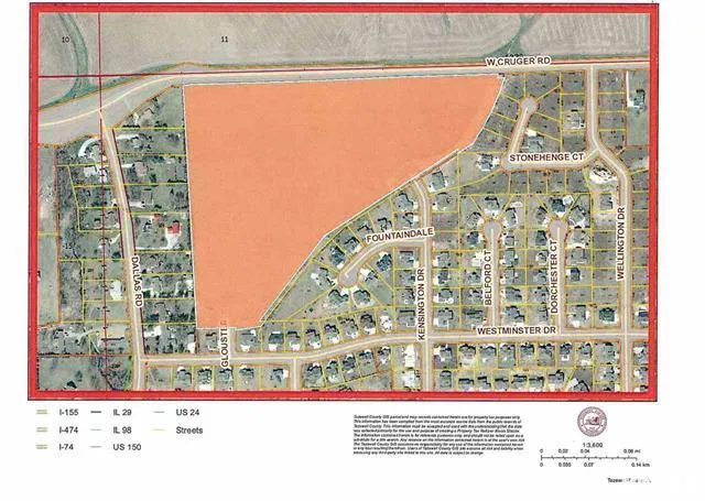 27.15 acres - perfect site for subdivision development - utilities at lot line; mostly tillable, gently rolling farm ground; Triangular in shape - see aerial plat in photos