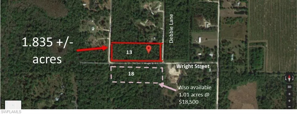 Zoned for Home or Mobile Home! ESCAPE CONSTANT CITY NOISE IN THIS PEACEFULLY SITUATED 1.835 +/- ACRE HOME SITE LOCATED JUST OFF OF JACKS BRANCH ROAD, ONLY 5 +/- MILES FROM CR 78, CLOSE TO THE LEE/HENDRY COUNTY LINE. An easy commute for those who work in Fort Myers but dont want to live in the confusion and turmoil! Property is wooded so you can clear as much or as little as you desire. Jacks Branch Road is paved with Willow Road to home site on Wright Lane a good shell-grade road. Home sites require well and septic. Property appears high and dry and flood insurance is not required in this location. Property has approximately 400 +/- ft. on Wright St. and 200 +/- ft. on Debbie Lane and located in the NW corner of those two streets. LET THIS PRIVATE SETTING CHANGE YOUR LIFE! NATURE SPEAKS TO YOU HERE!