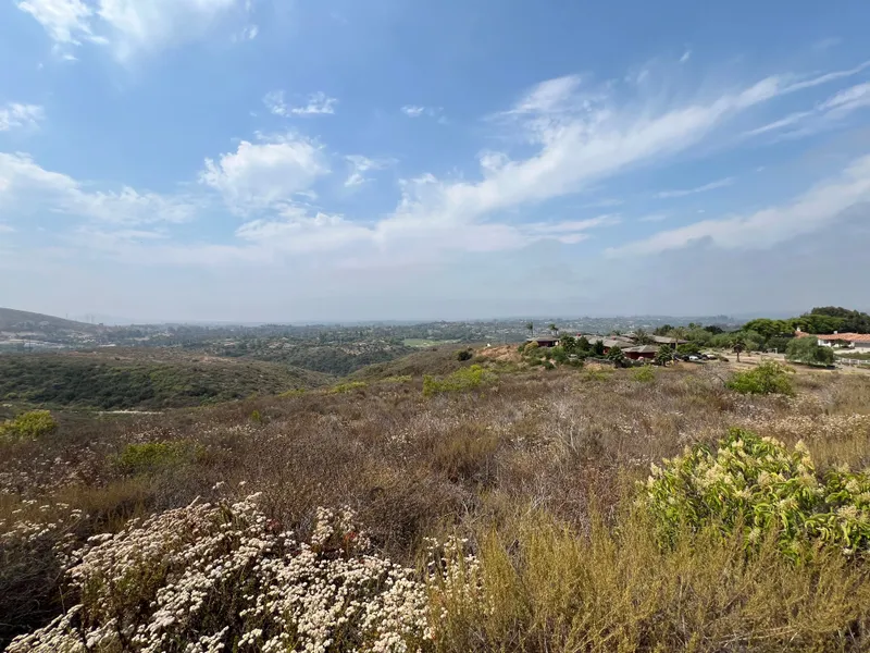 Discover the ultimate blend of luxury and tranquility on 9.5 acres of pristine land, perfectly situated between the serene neighborhoods of Elfin Forest and Olivenhain, with breathtaking vistas overlooking The Bridges of Rancho Santa Fe. This extraordinary property offers mountain and ocean views, as well as scenic golf course vistas, providing a picturesque backdrop for your dream home.