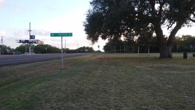 Hwy 59 frontage by FM 883, plus two streets to encircle the block, flat land to pave or build on, plus one large Oak Tree on front of property. There are no improvements on this property.