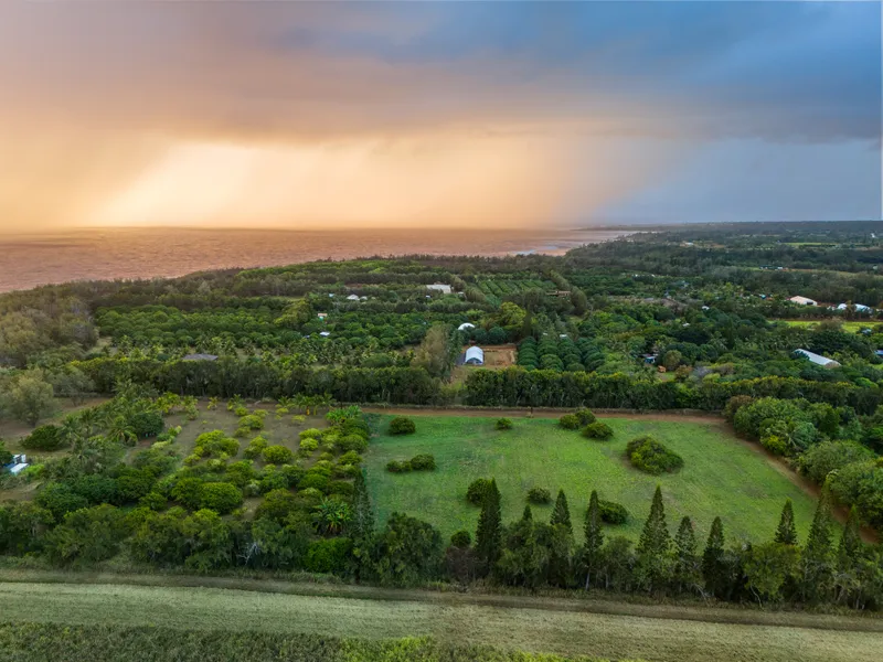 Discover this organic 10-acre agricultural land in Moloaa Hui Lands. Just 200 to 250 feet from an ocean bluff, it offers stunning mountain views and is Hawaii’s only production cashew farm, featured in Star Advertiser, Pacific Business News, and Edible Hawaii. With a rich variety of producing fruit trees, this farm is ideal for agritourism. The unit does not have a residential home site, however a producing farm can qualify for Farm Worker Housing (ask Planning for more information).