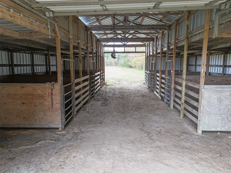 Unrestricted acreage improved with a thoughtfully designed residence & functional land features. The home offers vaulted, wood-paneled ceilings with exposed beams, an open-concept living & a stone fireplace that anchors the main living space. Custom built-ins & architectural details add character & storage, while the kitchen features granite countertops, a farmhouse-style sink & island seating. The primary suite includes a spacious bedroom & bath with soaking tub and walk-in shower & a large loft provides flexible secondary living space. The exterior highlights open pasture with multiple fenced areas, pipe & no-climb fencing & a centrally located pond with active fountain. A gated drive leads to the residence, which is complemented by covered porches & patios for outdoor living. Multiple outbuildings & a large shop with roll-up doors & covered bays support agricultural or recreational us...