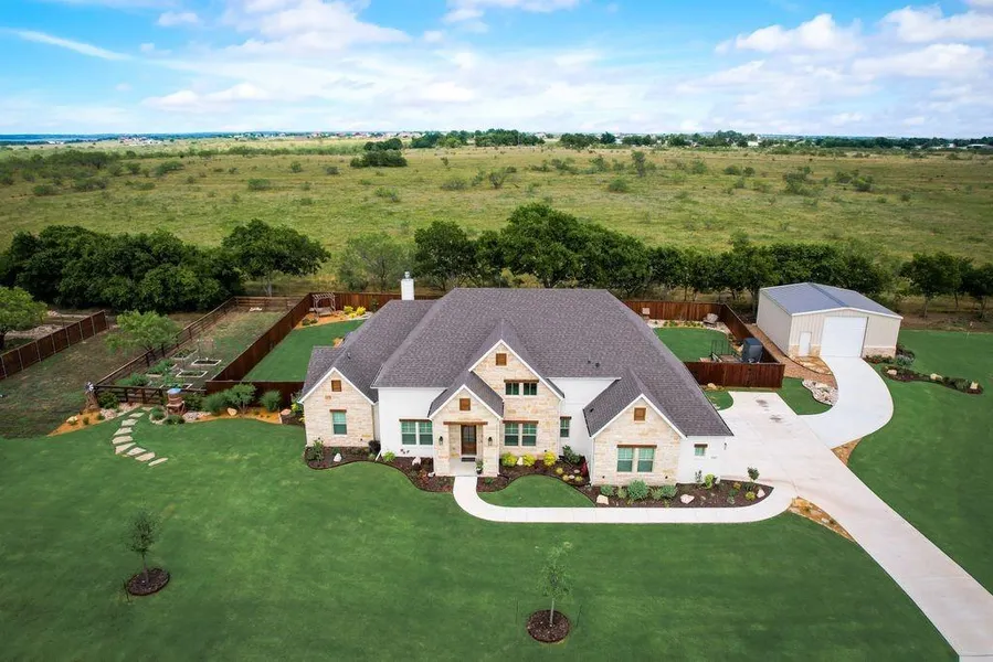 Amazing 1 acre lot has professionally landscaped easy to maintain gardens, upgraded privacy fence with little doggy windows for the dogs to watch the cows in the pasture. Private fenced vegetable garden extended covered porch, wood deck with hot tub, metal building for RV boat and a mini putting green so you can practice your swing for golf. Inside; 3 bedrooms and another room that could be used as an additional living space or a 4th bedroom with its own private bathroom. The main bedroom has a amazing soaking tub, walk- in shower, storage, cabinet space with separate vanities. The closet is phenomenal and it wraps around in the back of the closet. Cedar beams in the LR and as you're entering the home. The kitchen has herringbone light gray tile, beautiful white shaker cabinets and a farm house sink, Gas cook top! Granite countertops in the pantry and laundry room. Epoxy floors in the garage and so much more. Come an fall in love with this luxury home that has a country feel.