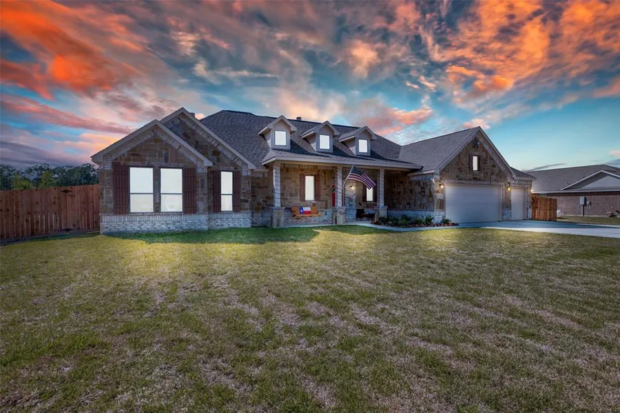 The ultimate single story open concept three bedroom plan designed to Wow! you on a 1 fully fenced acre lot. Stunning 2-year-old home offers a complete combination of modern design & natural surroundings.Upon entering the front door you'll be greeted by an open-concept living area w/plenty of natural light.The living room boasts a cozy fireplace & opens to an enormous covered back patio & exterior fireplace providing fantastic views & creating an amazing outdoor retreat perfect for entertaining or just enjoying nature. Kitchen affords sleek granite countertops, stainless steel appliances & convenient breakfast bar.Primary suite is the perfect retreat w/plush carpeting & spa-like en suite bathroom complete w/a soaking tub, walk-in shower, dual vanities plus a massive closet.Adjacent to the bedroom is a versatile study optimal for working from home or as an extra bedroom.The two additional bedrooms are equipped w/ample closet space & share a modern hall bathroom.