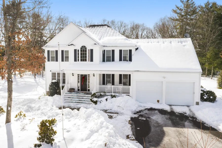 Gorgeous 10 year young Colonial on just over an acre. Large, flat backyard provides the perfect space for a skating rink, pool or any outdoor amenity you desire. Enter the home from the covered porch into a beautiful two-story foyer with coat closets flanking either side of the front door. To the right enter the first floor office through the French doors, to the left enter the formal living room that flows into the spacious dining room. The kitchen is appointed with an island and beverage station with a wine refrigerator and flows into the cathedral ceiling family room. The slider off the kitchen allows access to the deck and large backyard. The upstairs provides four bedrooms along with a bonus room off the primary bedroom that can be used as a second office/sitting room/fitness room. Homeowners chose to leave the basement unfinished to keep it as a workout space for their kids, an avi...
