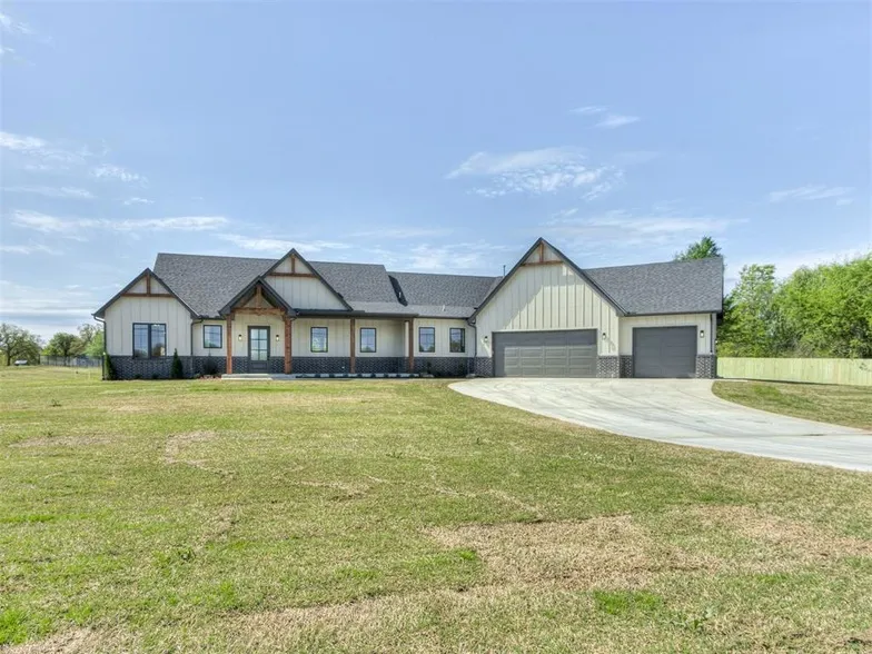 Brand new price! Live the Dream in Choctaw!Discover the perfect blend of luxury, comfort, and space in this brand-new 3-bed, 2.1-bath beauty on a full acre in the highly desired Choctaw School District! With nearly 2,900 sq ft of thoughtfully designed living space, this home was built for modern living and effortless entertaining. Step into a jaw-dropping kitchen featuring marbled white countertops, an oversized island with bar seating, a sleek backsplash, and an incredible butler s pantry with tons of storage, built-in appliances, and bonus prep space. Hosting just got a whole lot easier. The open-concept layout flows into a stunning living area with 12' ceilings, a statement fireplace, and custom wood built-ins, perfect for cozy nights or game-day gatherings. The split floorplan offers privacy, with a dreamy master suite that includes dual vanities, a soaking tub, a walk-in shower, and...