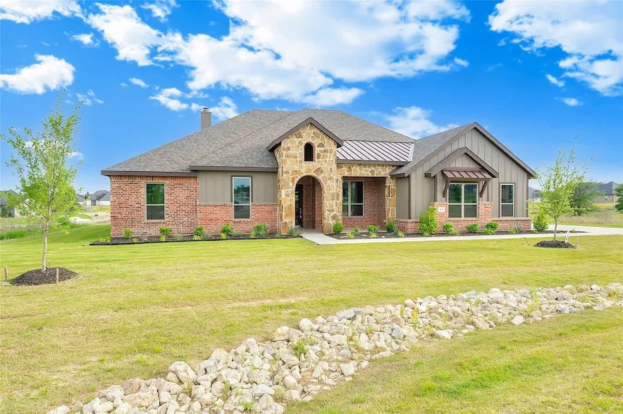 ** LOW INTEREST RATE AVAILABLE FOR LIMITED TIME!** NEW BUILD with Warranty in Azle TX, OUTSIDE CITY LIMITS. NO HOA or City Taxes saving you HUNDREDS a month!! Built by the established Silver Leaf Homes. As you Walk in, you'll see an oversized Foyer where you'll notice the Formal Dining to the right that connects to the Kitchen. Open Floorplan with a HUGE Living Area with a Stone to ceiling Fireplace and wooden beam across the top. Breakfast area to the side of the Kitchen and in the Kitchen, you'll have a Large Island. The Main Bedroom is on the right side of the home which connects to the Bathroom that has separate sinks, tiled shower, garden tub --When you walk into the oversized closet, you'll see it connects to the Laundry Room. As you walk into the home from your 3 Car Garage you'll find a Mud Bench in the hallway. On the Opposite side of the home, you'll find 3 Bedrooms along with a Bonus Room. Don't Wait, come view this GORGEOUS HOME at the end of a Culd-de-sac.