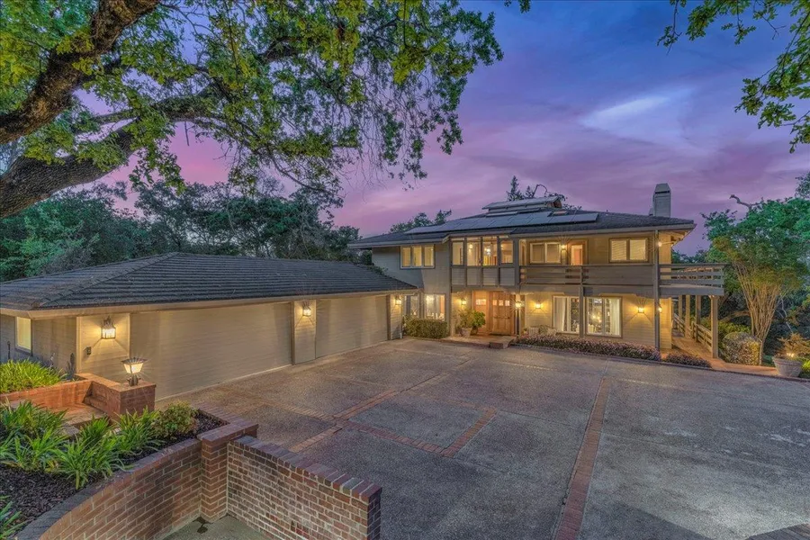 Welcome to this luxurious 5 bedroom, 5 bath, 4 car garage Saratoga Estate that boast architectural elegance designed by William Young. This tastefully designed 5241 sq ft of living space is situated on a little over an acre of resort style living w/ an exquisite pool-spa & cabana. Every Room boast a picturesque view of oak trees w/ 2 levels of wrap around private decks. From the moment you enter you are greeted by an exceptional foyer w/ amazing views opening to an expansive open concept. A living space adorned w/ a elegant library, high-end finishes & separate dining room. Park like setting w/ rose gardens, lush landscaping & beautiful views of flowering trees. The home features a chef's kitchen, large center island w/ 6 burner stove, 2 kitchen aide dishwashers, Jenn-Air double oven, Subzero refrigerator/freezer & large walk-in pantry. High ceilings w/ exposed beams brings in lots of natural lighting w/ multiple skylights throughout. DP windows, custom shutters, Large laundry room, HW floors throughout the downstairs living area & new carpet upstairs. Great room seamlessly connecting to the outdoor living area that California offers. Spacious, luxurious primary suite w/fireplace, walk-in closets, spa-like bathroom, media room/family room opens to an expansive outdoor living area