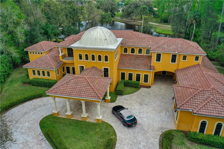 An incredible, Mediterranean inspired manor, greets guests with a stunning foyer that creates an excitement of arrival. Custom entry doors, soaring ceilings, a recessed dome & elegant wrought iron, double staircase that exceeds all levels of grandeur. Graceful details lead into the expansive breezeway with diagonal inlayed wood & travertine. A separate formal dining is adjacent the living room with a fireplace & triple french doors that overlook the resort pool & veranda with a backdrop of a seemly private pond & golf course view. The gorgeous kitchen showcases elegant cabinetry, wine fridge & double oven that open into the informal dining & great room, allowing for practical space usage & luxurious appeal. Outdoor living features a covered lanai screened patio & summer kitchen that is ideal for entertaining. The master ensuite encompasses a private sitting room with a breathtaking master bath, garden bathtub, walk in shower with a 9 electronic heads, custom built-in cabinetry & granite counters. Choose to take the elevator or the private back spiral stairway to upstairs quarters that features an abundance of balconies, additional sitting areas, a kitchenette, spacious ensuite bedrooms & an adjoining separate living quarters with a double master bedroom. This gorgeous estate within Alaqua golf community neighbors Heathrow & Lake Mary. Known for its' excellent schools, prominent business, outstanding shopping & dining. Live your best life in this custom luxury beauty. Seller will consider Seller-Financing.