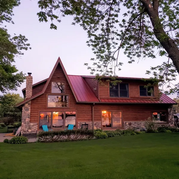 Beautiful home with log siding & fieldstone on Perkins lake with a 150 level lot & sandy beach. 2 total parcels. Full lawn sprinkler system & drip lines to gardens. 3-4 bedrooms, 2 1/2 baths, with over 2500 finished square ft. Insulated & finished 2 stall attached garage with 13 x 15 shop with in-floor heat & tornado shelter. Open kitchen, living room & family room with wood stove all have breathtaking views of the lake. Upstairs has a large primary bedroom with full view of the lake, a gas fireplace, 2 walk-in closets & attached room that can be used as a hot tub room or office. 2 more bedrooms, a full bath with large walk-in shower, soaking tub, laundry, & a loft with 1/2 bath complete the upper level. Expansive outdoor entertaining space with a wrap around patio, fire pit area & beach. Storage shed for lake toys & fresh water for cleaning fish. House has in-floor heat with forced air furnace & central air. Beautiful landscaping with flower gardens, fruit trees, fish pond, & more!