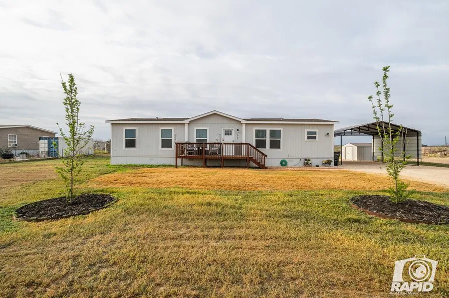 This one-owner 2022 Clayton home sits on an acre of land and offers the entire family a taste of country living. Enjoy entertaining with the open floor concept that allows conversation and memories to be harvested. This meticulously well-maintained home offers 3 bedrooms, 2 bathrooms, front and back decks, a storage shed, and a smart thermostat. Pets & children can play freely in the completely fenced-in acre with a manual gate. Protect your car under the detached carport within steps to the home. Solar security motion lights in various areas. Can you believe the sellers have never hung a picture on any wall! Property is serviced quarterly by an exterminator to ward off any unwanted bugs. Also, HVAC is serviced quarterly to ensure top-notch efficiency. The roof was replaced in 2023, and the septic was installed only 3 years ago. Sod was placed in some areas of the front and back to allow children and pets to enjoy playtime. Don't miss your opportunity to make this unique home yours!