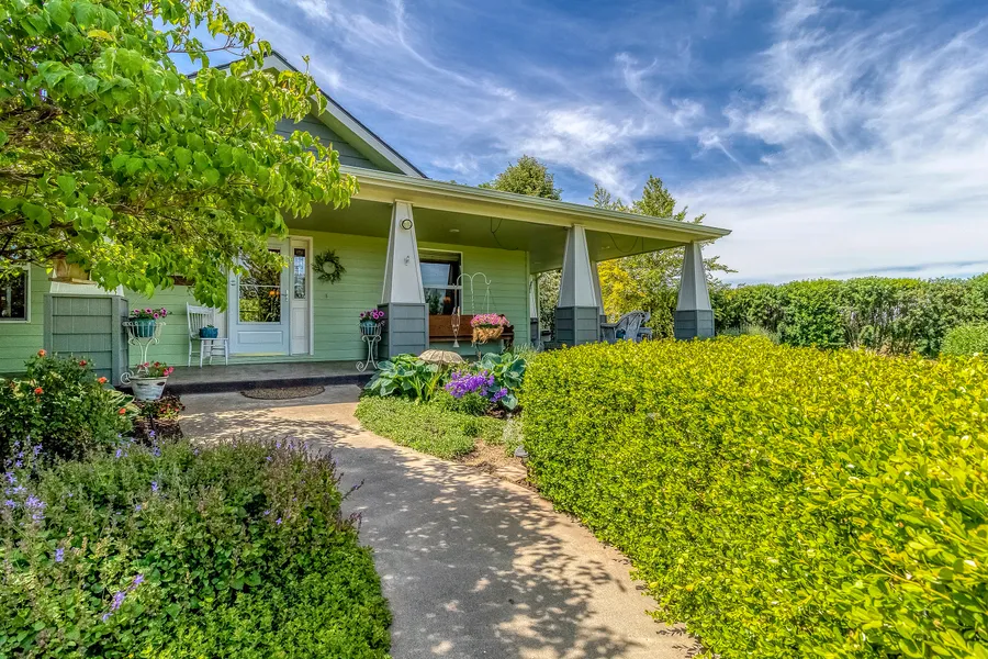 Situated at the end of a cul-de-sac, beautifully landscaped, fruit trees and raised garden beds.