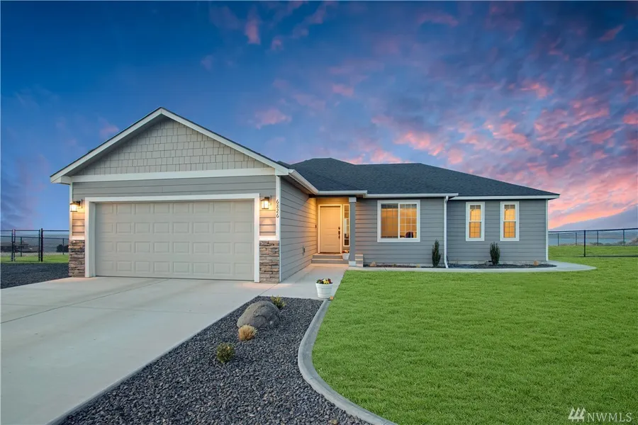 Gorgeous Rambler on 1 acre w/ unbeatable views of the Potholes Reservoir. Built & designed to balance beauty & functionality in 2018, the main living areas and office have laminate flooring, carpet in the bedrooms & ceramic tile in baths & laundry. White, doors, trim & sleek black hardware shine! In the great room you will notice the vaulted ceiling, propane fireplace w/ stacked stone to mantle, and sliding glass door that leads out to the extra large covered patio. The kitchen features white & gray cabinets w/ soft close doors & drawers, quartz countertops, full height backsplash & stainless steel appliances. The lot is thoughtfully landscaped w/ nearly a 1/2 acre in grass, black chain link fenced, curbing, basalt rocks & boulders.