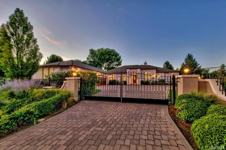 This fabulous property presents a myriad of custom amenities, situated on a spacious one-acre plot with a convenient and central location. Two separate gated entryways open to a large paver stone courtyard encompassed by lush landscaping with ample parking and utility space offered by a generous four-car garage with workshop space. A sprawling single-story formal floor plan with 10-foot high ceilings and 8-foot high doors provides superb form and function. A custom kitchen resides at the heart of the house featuring granite counter tops, maple cabinetry, stainless-steel KitchenAid appliances including wine fridge, a Dacor six-burner cooktop range with beautiful tile backsplash and pot filler faucet, a convenient pantry, and adjacent breakfast nook. A large family room, dining room, and formal living room encompass the kitchen with a master wing on one end and guest bedrooms on the opposite wing. For more photos, go to:http://tours.2view.com/mediaoneclick/11655/gallery/&contact=none
