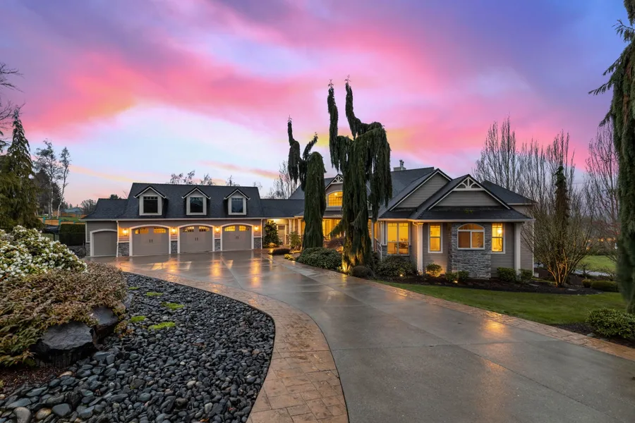 Located in the coveted Mettler Manor, this NW Craftsman, built by Brabec Homes, is perfectly positioned to maximize the views and sunsets to the West. This daylight ranch offers ample space to play in the yard, a large covered deck with an outdoor fireplace and an abundance a mature lansdscaping that provides wonderful privacy. On the main level, this home offers large entertaining spaces, vaulted ceilings, Brazilian cherry floors throughout, a primary suite with exceptional views and a fireplace, two additional bedrooms with a shared bathroom and a spacious kitchen that opens to a large nook. Downstairs one will enjoy a bonus room with a wet bar, a large gym, two bedrooms with en suite bathrooms, a separate office with it's own entrance and a movie theatre to enjoy your all time favorite shows. For anyone looking for acreage, with a beautiful custom home, this is where you want to be.