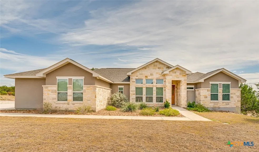 Discover this stunning hill country home featuring 3 bedrooms and 3 bathrooms, nestled on a generous 1-acre lot in Mystic Shores. Upon entering, you'll be welcomed by an expansive open floor plan. The kitchen is a true entertainer's dream, with a large island and modern stainless steel appliances. A cozy fireplace in the living room adds to the warmth and comfort of the space. The master bedroom is a serene retreat, boasting plenty of room and an opulent bathroom equipped with a soaking tub, walk-in shower, dual sinks, and a spacious walk-in closet. One of the guest bedrooms comes with its own private bathroom for added convenience. The laundry room is well-appointed with plenty of cabinets for storage and a sink. Step outside to enjoy the large, private covered patio, which overlooks the picturesque 1-acre property.