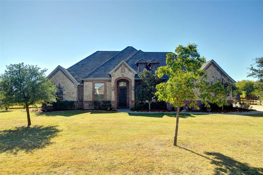 Lovely one story home on over 1 acre! No space wasted, great floor plan, split bedrooms. Kitchen is open to the living room and boasts a large island. Double oven, granite counters and stainless appliances, 42 inch cabinets. Bonus room finish out is possible. Covered patio with outdoor grill and fireplace. Home has storm shelter in the back. Excellent schools in Northwest ISD. Beautiful outdoor sitting area with fireplace. Country living close to town. Great floor plan with space for out buildings and a pool. Beautiful home inside and out!