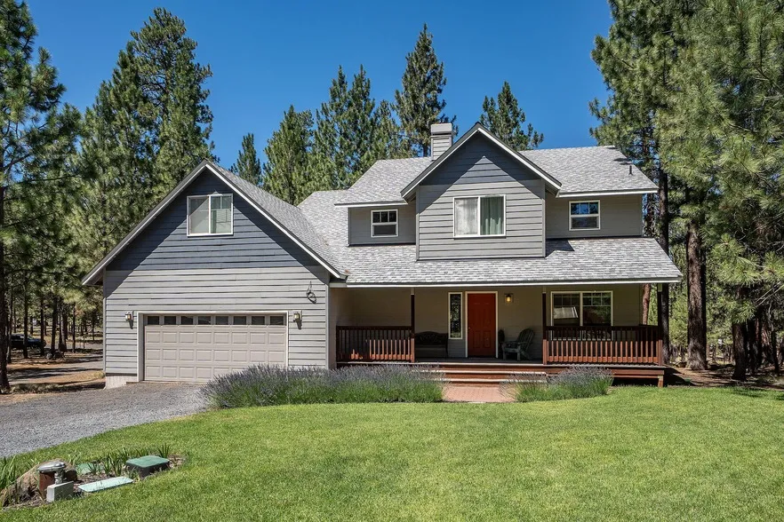 Tucked away on a wooded 1-acre corner lot, this charming 2-story home offers privacy, space, and versatility. With 3 bedrooms upstairs, 3 full baths, and a main-level den, there's room for everyone. Hardwood floors, a cozy wood-burning fireplace, and abundant natural light create a warm, welcoming feel. Enjoy outdoor living on the covered decks at the front and back of the home. The greenhouse and garden-ready space invite your green thumb. Located in a quiet, horse friendly neighborhood with access to community trails, and a park-this is a true retreat with room to grow. Live in Sisters, Oregon with easy access to ski, hike, bike, ride, and abundant community events year around!
