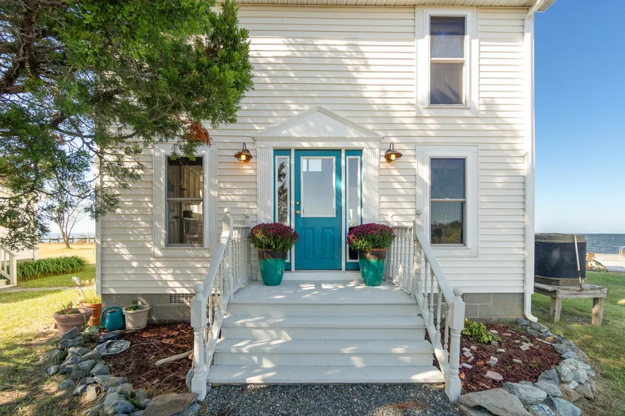 Welcome to this coastal paradise in Fishing Creek, Maryland! This serene property, sited on 1.02 acres, is perfectly situated in a desirable waterfront community and exudes classic charm. The 2BR/1BA 1100 +/- sq ft main house and 1BR/1BA 400+/- sq ft guest cottage offer ample space for your family and guests. The main home welcomes you with warm, natural light and sweeping views of the Chesapeake Bay and Barren Island, creating an airy and inviting seaside ambiance. The well-appointed floor plan enhances the open living space and maximizes views, with the kitchen, living room, and dining area conveniently located on the first floor. Awaken each morning in the primary suite, enjoying the views from your waterfront balcony, and indulge in the warm breezes floating across the Bay. An additional water view bedroom is located on the second floor. The core of this home is the kitchen - perfect...