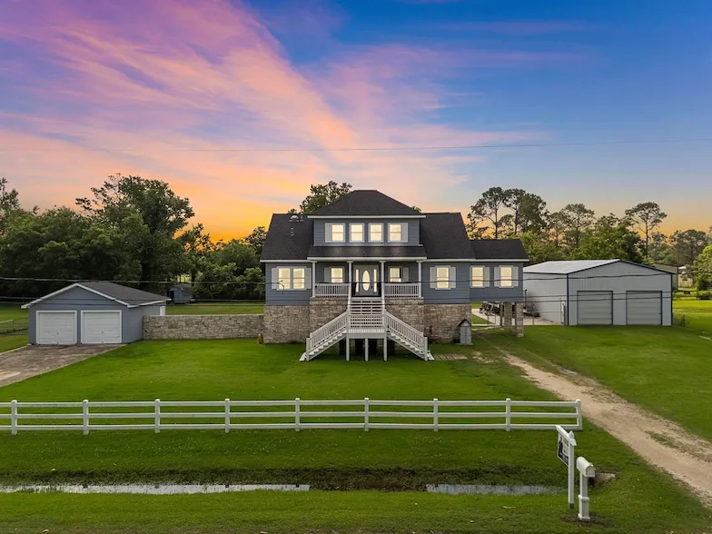 A rare find in Santa Fe, TX this expansive 5-bedroom, 4,747 sqft home sits on over an acre, just minutes from Hwy 6 for easy commuting. Perfect for entertaining, it features a spacious open-concept living and dining area, a country-style kitchen with a cozy breakfast nook, and a versatile media room or office. The oversized primary suite offers a luxurious retreat with a spa-style bath, soaking tub, dual vanities, and a massive walk-in closet. The first floor functions as a private apartment with its own kitchen, living/dining area, bedroom, and bonus room ideal for multi-generational living or rental income. Outside, enjoy a large workshop and RV pad with electrical hookups. Space, flexibility, and country charm all in one! This property will not last. Call for a private showing today!