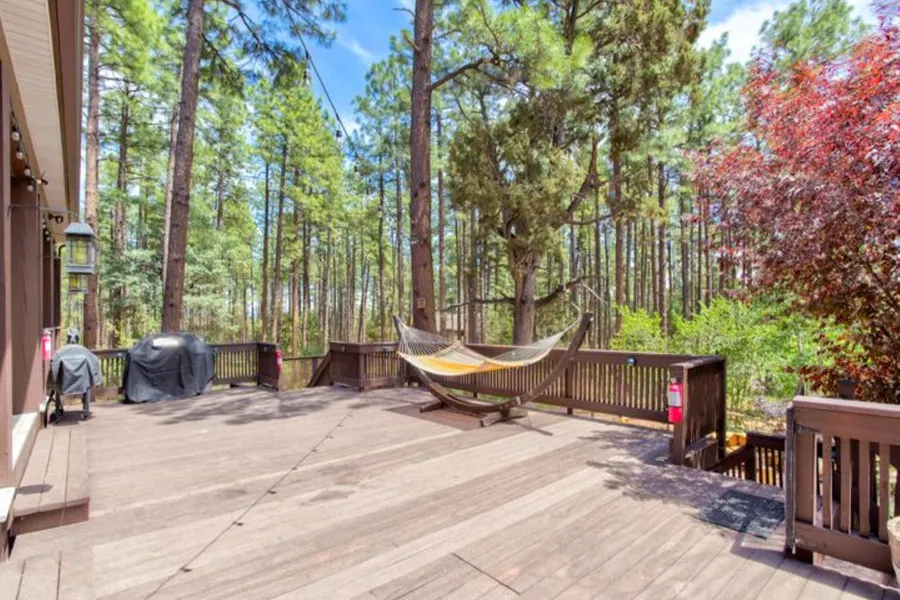 5 bed 5 bath home on over an acre in the shade of the pines in Collins Ranch area of Payson. 10' ceilings, maple and stone floors. Gourmet kitchen with Viking Range, knotty hickory cabinets and granite countertops. Basement is an extraordinary getaway complete with a bar, dance floor, DJ booth, booth seating, pool table, shuffleboard, wine cellar and dry sauna. Two 2 car garages, workshop, jacuzzi, huge trex deck, firepit, fruit trees surround this amazing home in the cool pines of Rim Country. Complete with fire suppression system.