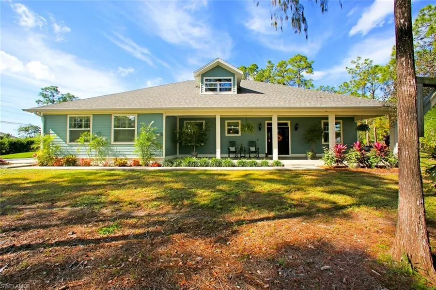This nearly new 2015-built Country style home offers "The Best of Both Worlds" in highly coveted "San Carlos Estates." Situated on over an acre with Western exposure, it provides the openness and serenity of rural living, while being only minutes away from shopping, dining, entertainment and most desirably, the pristine beaches along the Gulf of Mexico. Boasting both a front and enclosed back porch that expands to a deck, there is ample space to enjoy sipping your morning coffee or dining el fresco while watching the sunset over the pines. The oversized lot allows for the pool of your dreams and the upstairs Bonus area is perfect for maintaining your own privacy while entertaining family and guests. Finished beautifully throughout, this Country Estate is move-in-ready featuring neutral colors, gorgeous wood plank tile throughout the main living areas, a spacious Master closet, impact resistant windows, all nearly new mechanicals and an attractive exterior with Hardie Board siding. Not only are you enjoying serene Country living, enjoy the benefits of being outside of an association with no HOA fees.
